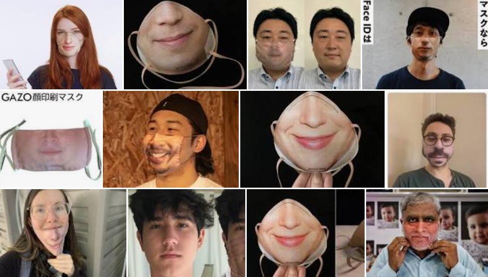 マスクでは実際の顔がわからないため、マスクに自分の顔の鼻や口がプリントされている自画像マスクなど。