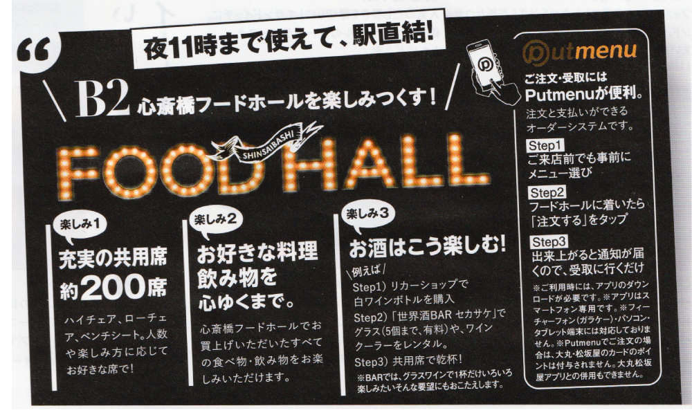 とても気に入ったのが、B2階地下鉄心斎橋駅直結のフードホール。