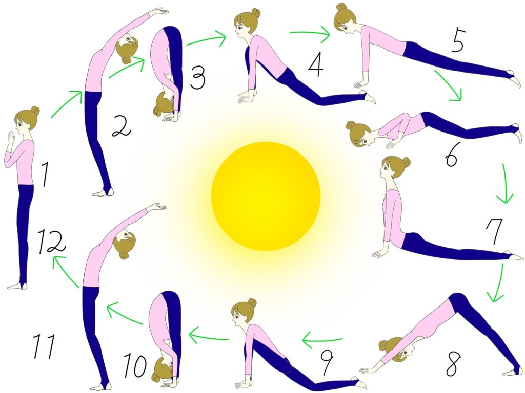 太陽礼拝(サンスクリット語でスーリヤ・ナマスカーラ)