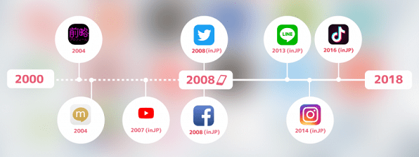 だいぶ前にfacebookとともに大ブームが来て、そのあと、LINE・InstagramやTikTokがブームとなっています。