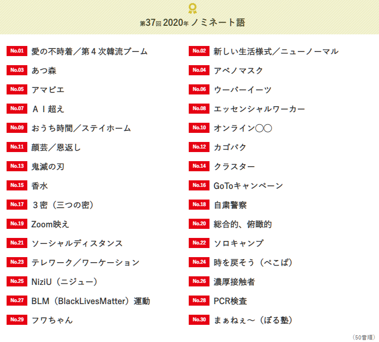 今年もユーキャンから2020年の新語流行語大賞のノミネートが発表されました。
